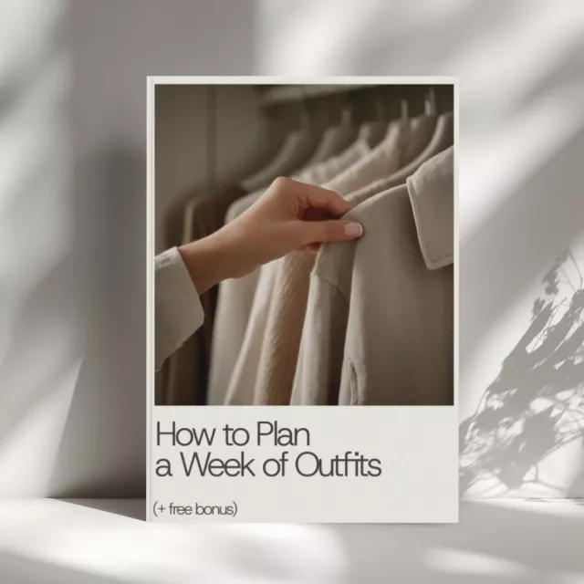 Stop wasting time each morning and start enjoying your closet again. Download How to Plan a Week of Outfits today and learn how to plan outfits for a week with ease, confidence, and style. Your stress-free mornings are just a click away!